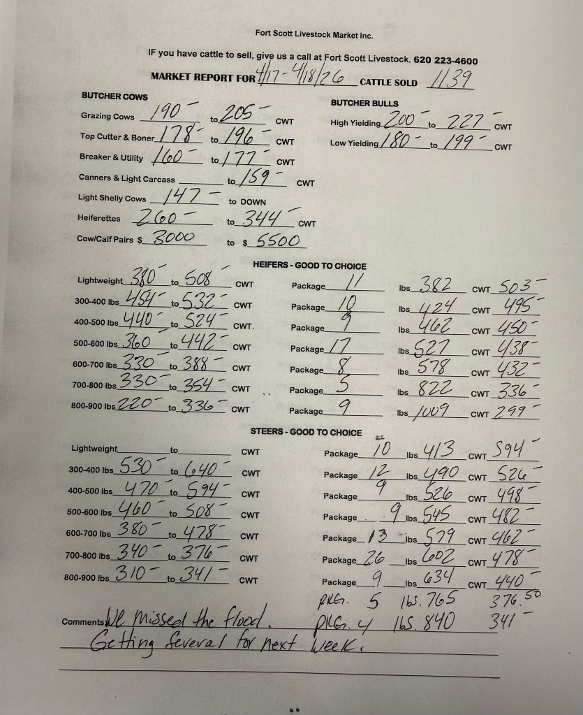 April 17th & 18th 2026 total head sold: 1139
